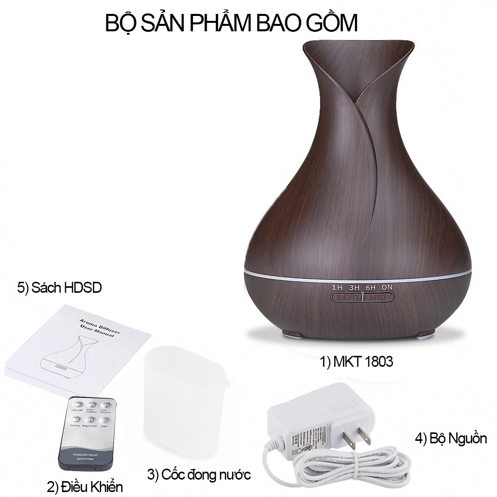 Máy Xông Tinh Dầu MKT1803 Phun Sương Bình Hoa Dung Tích 550ml Máy Tự Ngắt Khi Hết Nước Bù Ẩm Phòng Điều Hòa Phòng Ngủ free ship