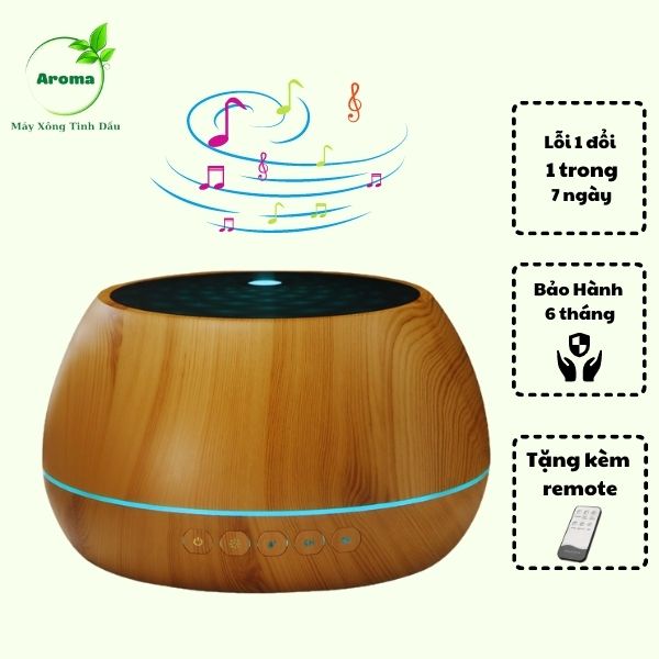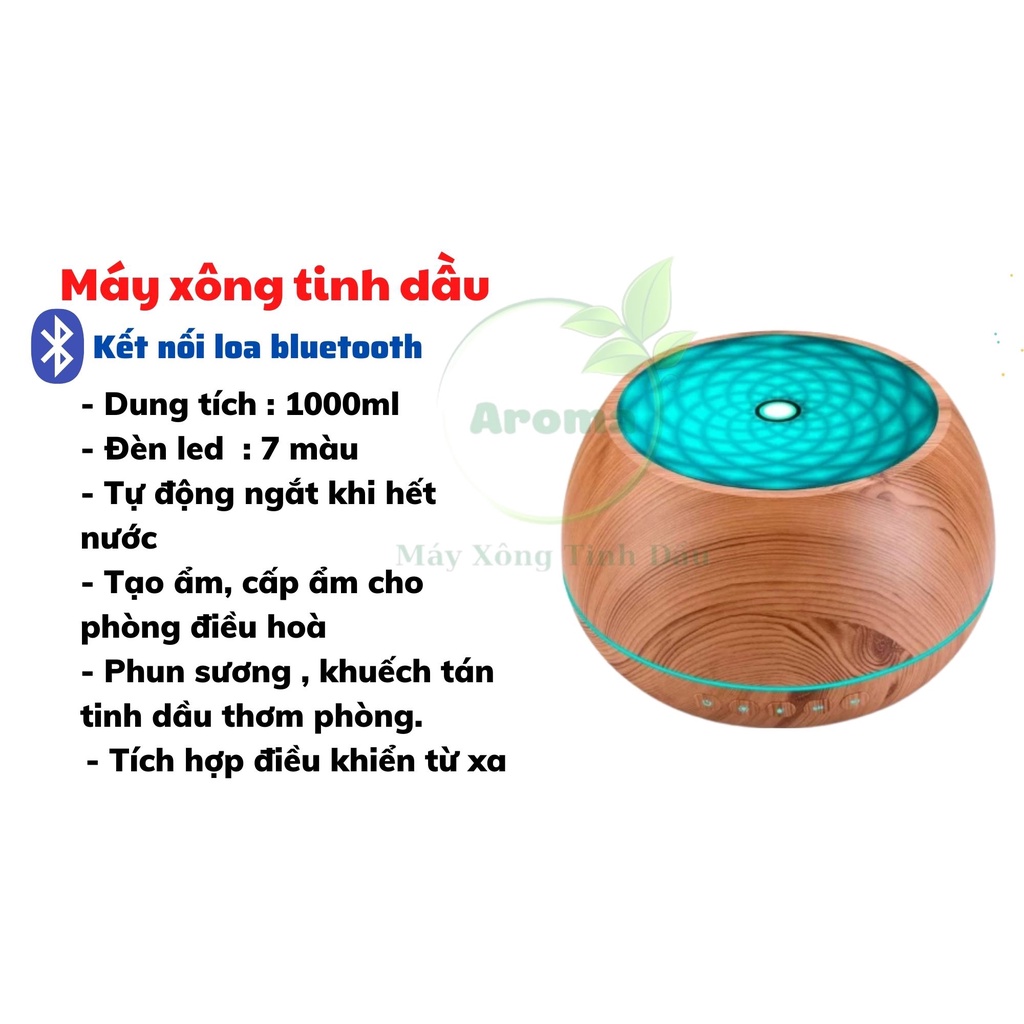 Máy xông tinh dầu có loa tích hợp Bluetooth 1000ml Siêu Âm phun sương tạo ẩm,khuếch tán hương thơm có điều khiển, free ship