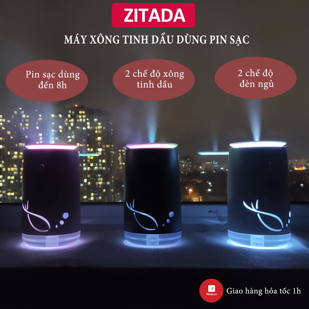 Máy xông tinh dầu khuếch tán tinh dầu phun sương tạo ẩm Zitada dùng pin sạc 310ml cho phòng ngủ phòng khách văn phòng free ship