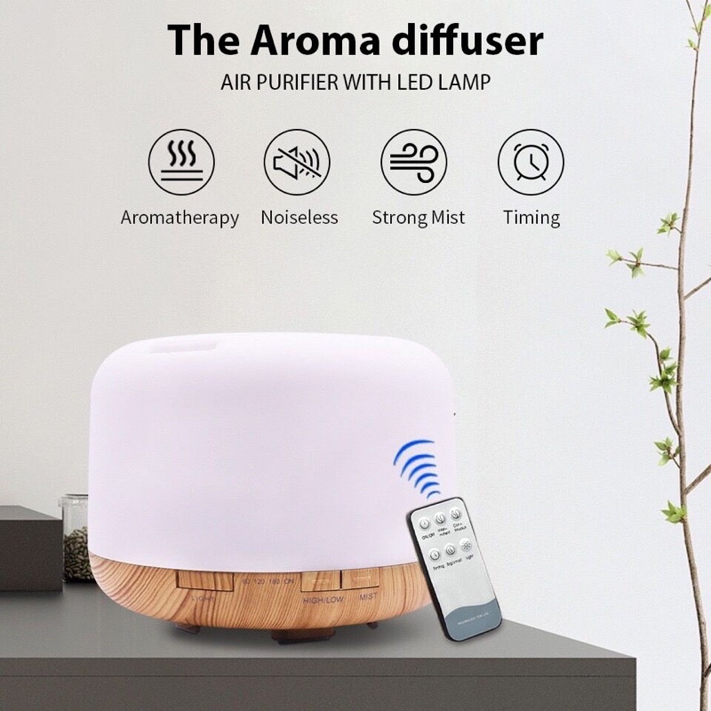 Máy Xông Tinh Dầu Dung Tích Lớn 500ml Tích Hợp Đèn Led 7 Màu Trang Trí Và Đèn Ngủ Phòng Cực Đẹp free ship